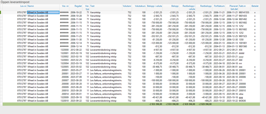 Detta är nu resultatet, de två leverantörsnumren är ihop slagna till ett.